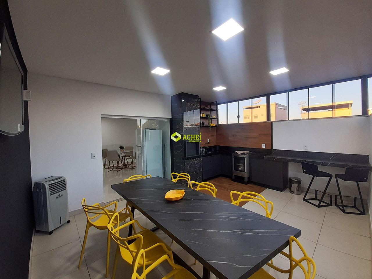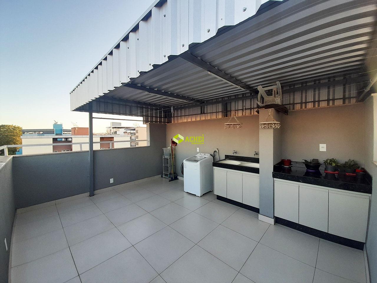 Apartamento cobertura com 1º pavimento com 03 quartos (sendo 02 quartos com armários e 01 suíte com box), sala e banho social. 2º pavimento com sala, cozinha com armário e cooktop, espaço gourmet com cozinha com armário, churrasqueira e banho social com box. 3º pavimento com área livre e área de serviço. Vaga de garagem para 02 veículos. Imóvel com piso em porcelanato. Prédio com interfone e portão eletrônico.