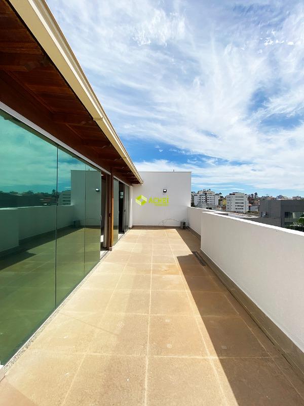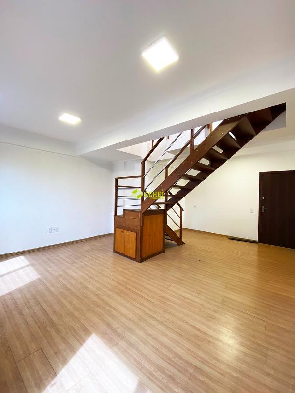Apartamento cobertura duplex 1º pavimento com com sala ampla, cozinha com armário, copa, banho social com armário e box e 02 dormitórios com armários sendo um suíte (com armário e box). 2º pavimento com sala ampla, cozinha com bancada e cooktop, varanda com ducha, banho social, 01 dormitório e área de serviço. Vagas de garagem cobertas para 02 veículos. Imóvel com piso em porcelanato e laminado. Prédio com elevador, portão eletrônico e interfone.