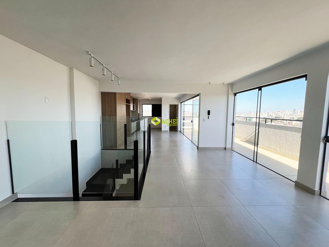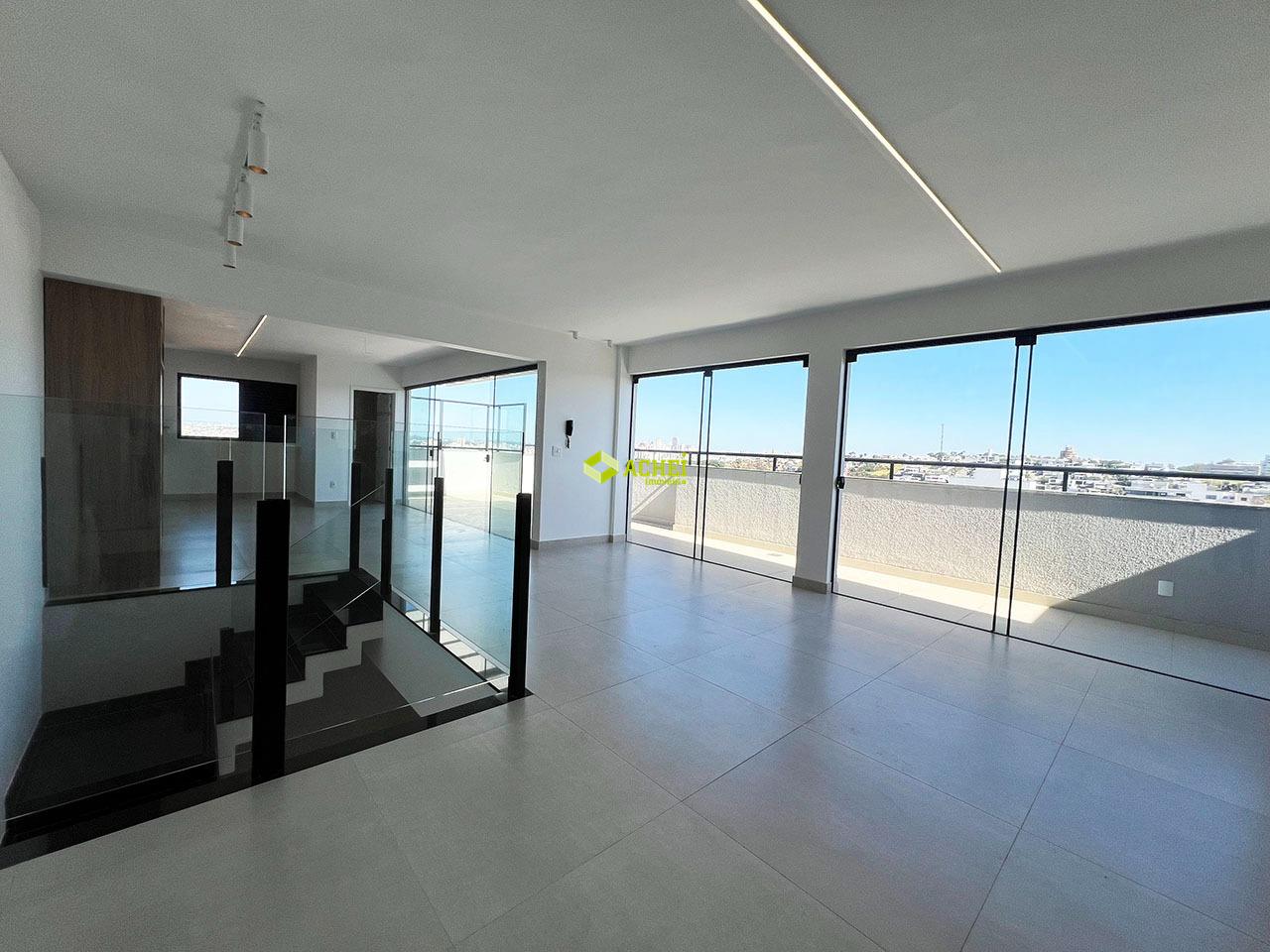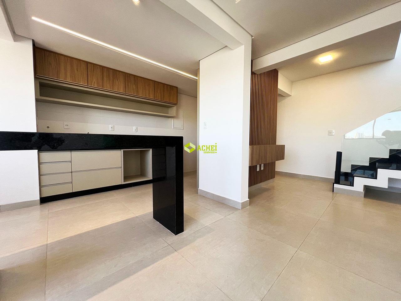 Apartamento cobertura 1º pavimento com 03 quartos sendo 01 suíte com closet e sacada e 01 quarto com armário, sala ampla com painel, cozinha com armários planejados com bancada e cooktop, banho social com armário e área de serviço. 2º pavimento com sala ampla para 02 ambientes, cozinha com armários planejados e cooktop, área gourmet com churrasqueira, 02 banhos sociais com armários, área livre com vista para cidade. Imóvel com piso em porcelanato e laminado. Vagas de garagem cobertas e paralelas para 03 veículos. Prédio com hall de entrada, elevador, portão eletrônico e interfone.