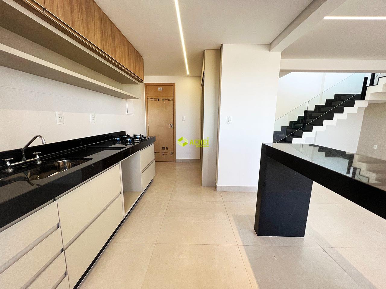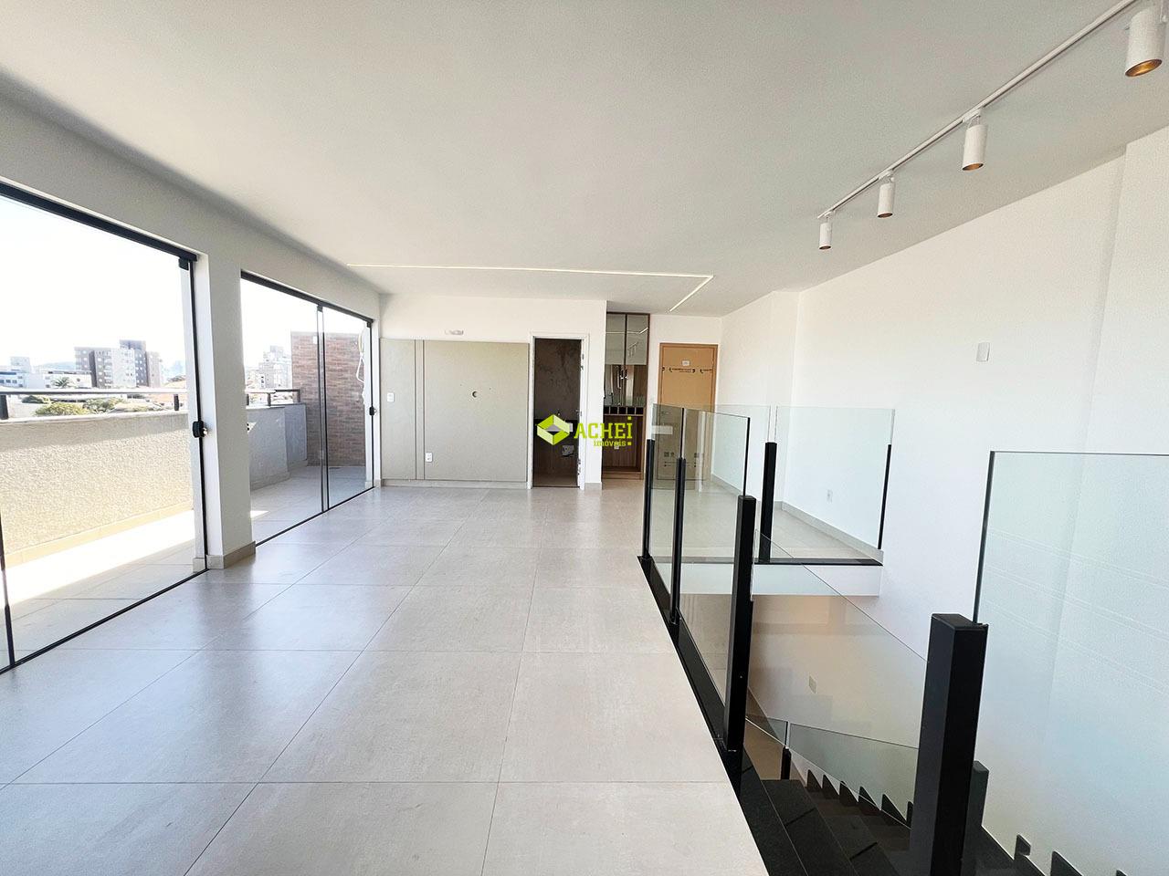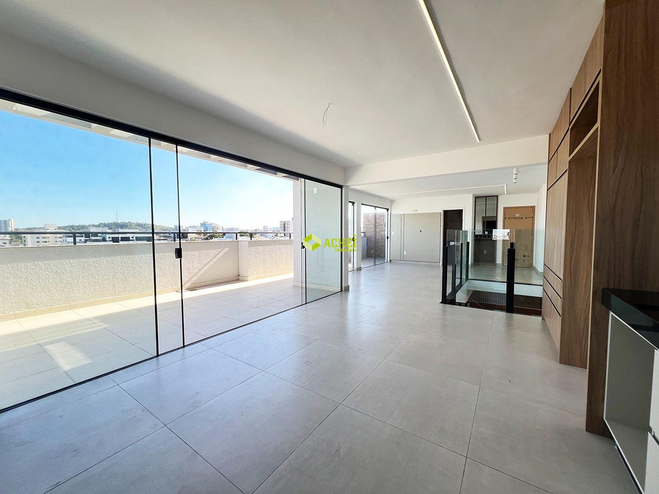 Apartamento cobertura 1º pavimento com 03 quartos sendo 01 suíte com closet e sacada e 01 quarto com armário, sala ampla com painel, cozinha com armários planejados com bancada e cooktop, banho social com armário e área de serviço. 2º pavimento com sala ampla para 02 ambientes, cozinha com armários planejados e cooktop, área gourmet com churrasqueira, 02 banhos sociais com armários, área livre com vista para cidade. Imóvel com piso em porcelanato e laminado. Vagas de garagem cobertas e paralelas para 03 veículos. Prédio com hall de entrada, elevador, portão eletrônico e interfone.