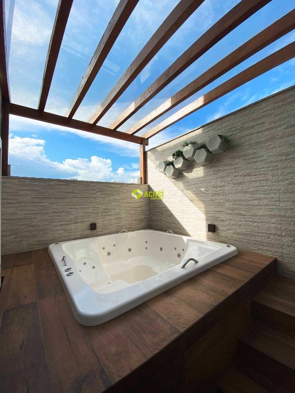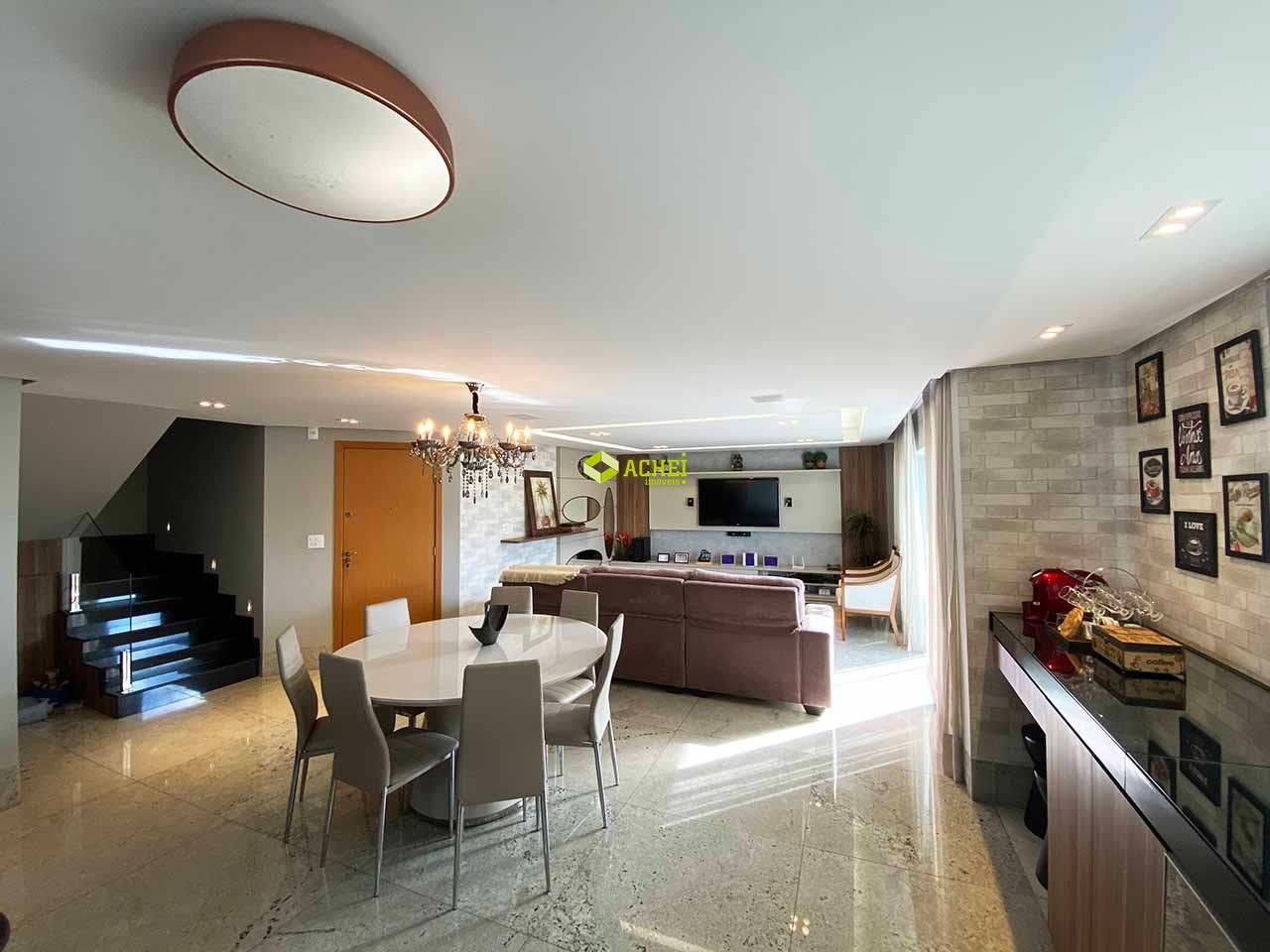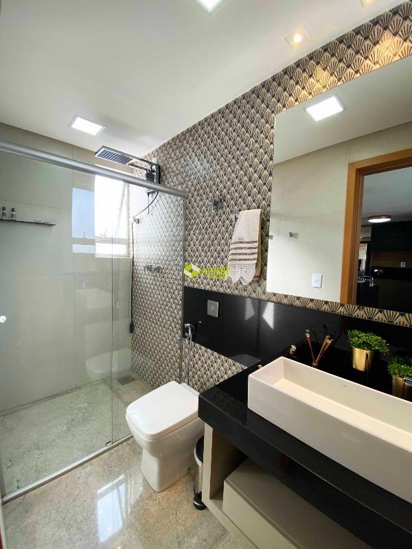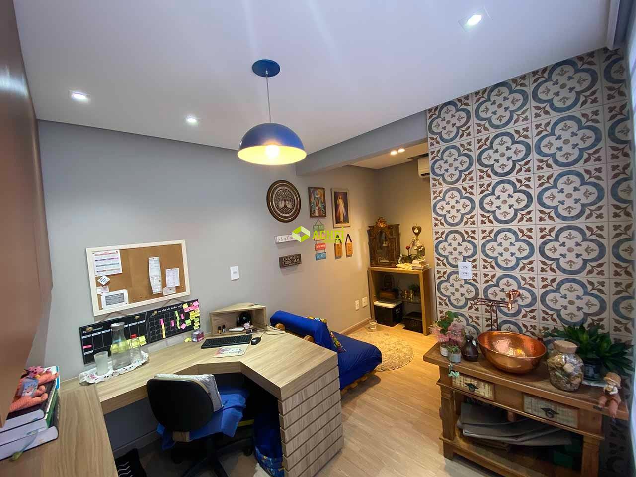 Excelente apartamento de cobertura duplex, sendo o 01 pavimento com sala ampla para 02 ambientes com adega, rack e painel de TV planejados, banho social com armário, box de vidro e espelho, cozinha planejada com armário, cooktop e forno embutido, área de serviço com armário e varal, varanda gourmet com hidromassagem e sauna. 02 pavimento com 04 dormitórios ambos com ar condicionado e armário planejado (sendo 02 suítes com armário, espelho e box de vidro) sacada, escritório e estúdio de musica. Apartamento com sistema de som embutido, projeto luminotecnico, todo com rebaixamento de gesso, box de despejo e aquecedor solar. Vaga de garagem para 03 veículos. Imóvel com piso em porcelanato, granito e durafloor. Prédio possuí portão eletrônico, interfone, gás canalizado.