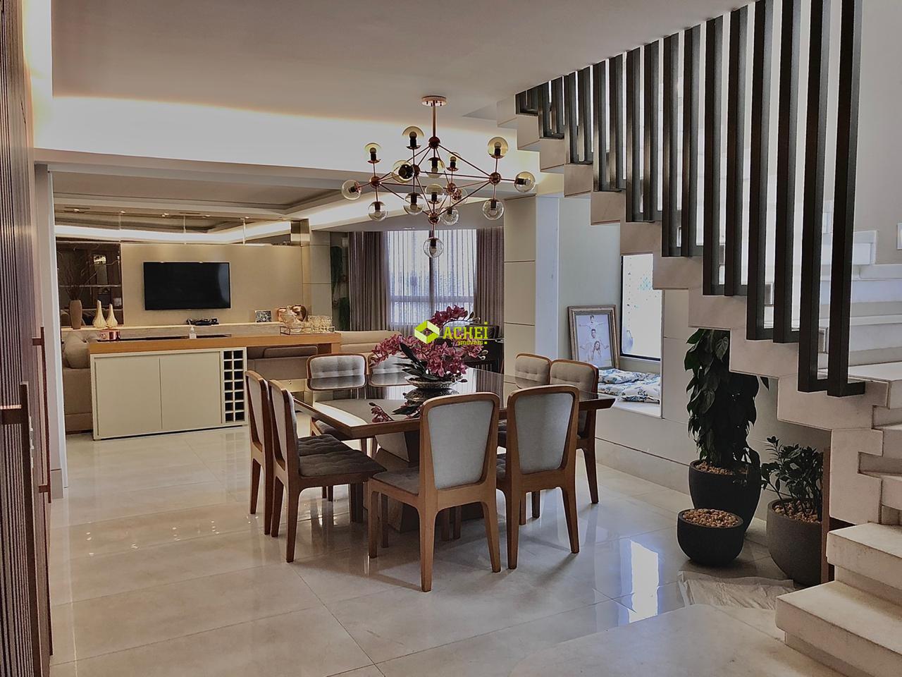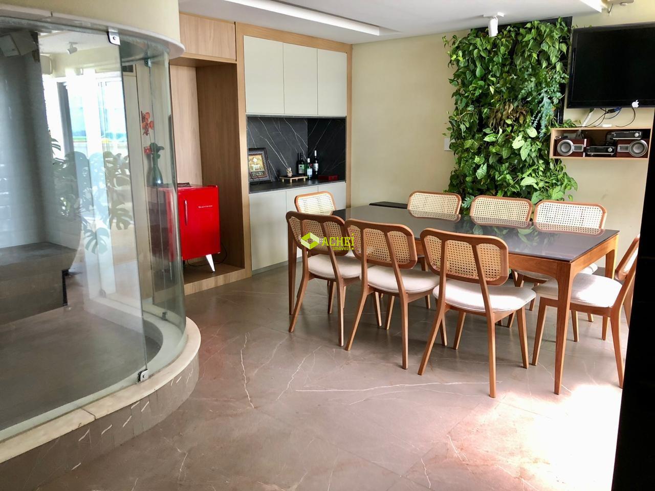 Apartamento cobertura 1° pavimento com 04 quartos sendo 02 suítes com box e armário, sala de estar, sala de jantar, 02 banhos social com armário e box, 2 ° pavimento com sala ampla, suite, brinquedoteca, espaço gourmet com churrasqueira, piscina, sauna, área livre, 03 vagas de garagem, aquecimento solar, ar condicionado central, acabamento em granito e mármore importado, mobília planejada, interfone, portão eletrônico.