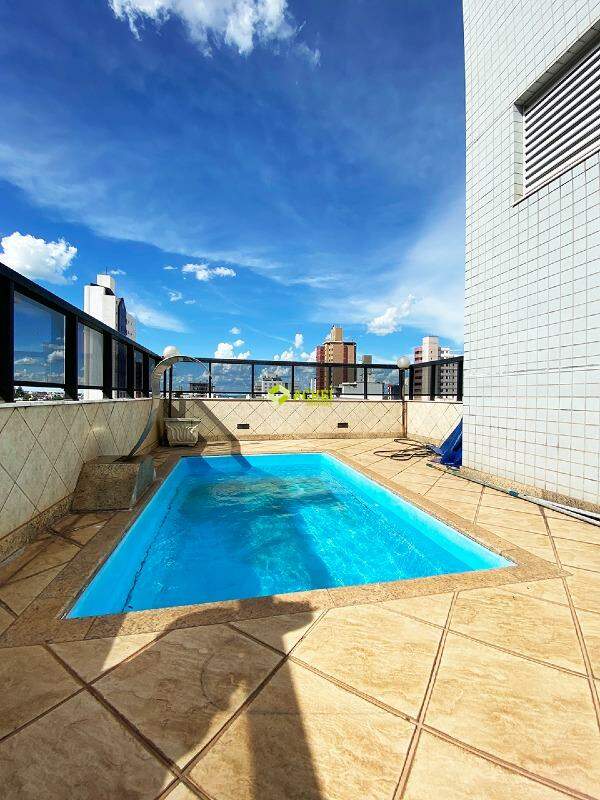 Apartamento cobertura em alto padrão sendo no 1º pavimento com sala ampla para 02 ambientes com mobílias, 01 copa integrada com cozinha com armário, coifa e cooktop, 01 lavabo, banho social com armário e box, 04 quartos com armários sendo 02 suítes com closet, hidromassagem, armário e box. 2º pavimento com 01 sala, 03 quartos sendo 01 suíte, 01 quarto com varanda, 01 quarto DCE, área de serviço, área gourmet com churrasqueira, cooktop, armários, sauna com banheiro integrado, banho social com armário e box, varanda, adega e piscina. Apartamento com teto rebaixado, paredes emassadas e pisos em granito, cerâmica e tábua corrida. Vagas de garagem exclusivas, cobertas e paralelas para 03 veículos. Prédio com elevador, gás canalizado, salão de festas, portaria 24 horas, piscina, portão eletrônico e interfone.