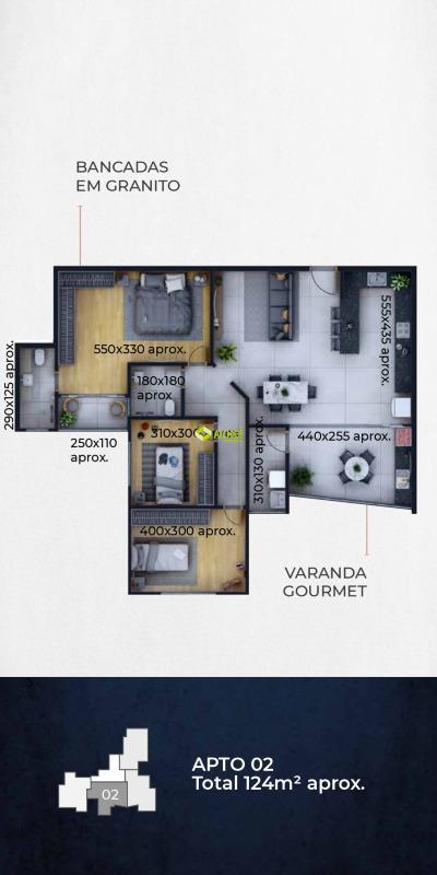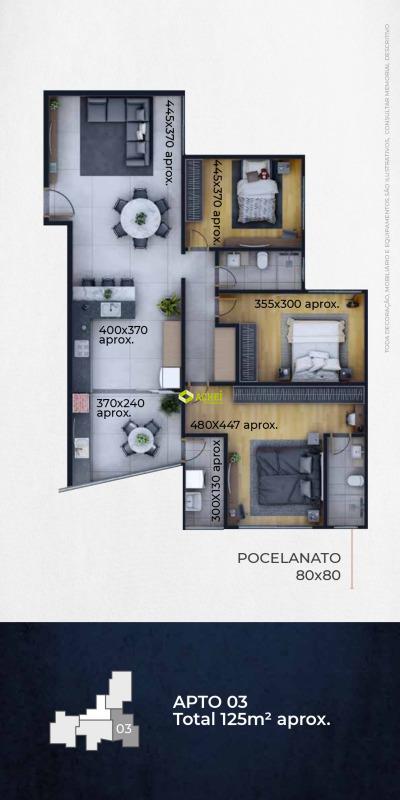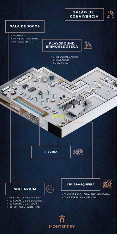 Apartamento 03 quartos (sendo 01 suíte), sala com sacada, cozinha com bancada, banho social e área de serviço. Imóvel com piso em porcelanato. Vagas de garagem cobertas e paralelas para 02 veículos. Prédio com elevador, salão de festas, playground, piscina, churrasqueira, academia, portão eletrônico e interfone.