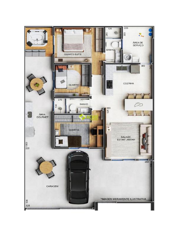 Casa com 03 quartos sendo 01 suíte, sala com pé direito duplo, varanda, banho social, cozinha, varanda gourmet com churrasqueira, área privativa e área de serviço. Imóvel com piso em porcelanato. Vagas de garagem cobertas e paralelas para 02 veículos. PREVISÃO DE ENTREGA 05/2025